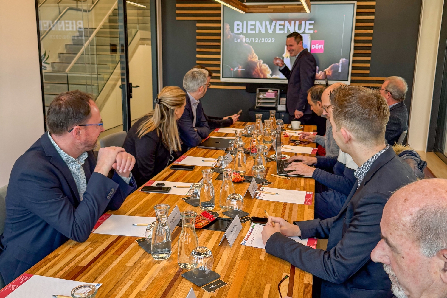 Le monde évolue à une vitesse vertigineuse, incroyablement rapide. Chacun d'entre nous en est conscient : le chemin menant à ce « nouveau monde » sera complexe. Les intelligences artificielles génératives ont récemment accéléré la productivité, modifié notre rapport au travail, stimulé l'innovation et redéfini nos interactions sociales. Découvrez des ateliers de sensibilisation sur ces sujets. En cette fin d'année, e-net a convié des représentants d'acteurs visionnaires et influents du monde politique, académique et socio-économique. Sur le plan politique, nous avons sollicité les Présidents des six partis politiques francophones représentés dans nos instances démocratiques, ainsi que leurs conseillers : PS, PTB, MR, ECOLO, LES ENGAGES & DéFI. L'objectif de ces rencontres est d'enrichir une série de solutions concrètes et pragmatiques conçues par nos experts, dans l'intérêt de la Wallonie, de ses entreprises et de sa population. Le 8 décembre 2023, c’était au tour de François DE SMET accompagné d’experts de chez DéFI. Soulignons notamment la présence d'Amaury ALEXANDRE, député de la Transition écologique et de la Participation citoyenne à la Province de Namur.