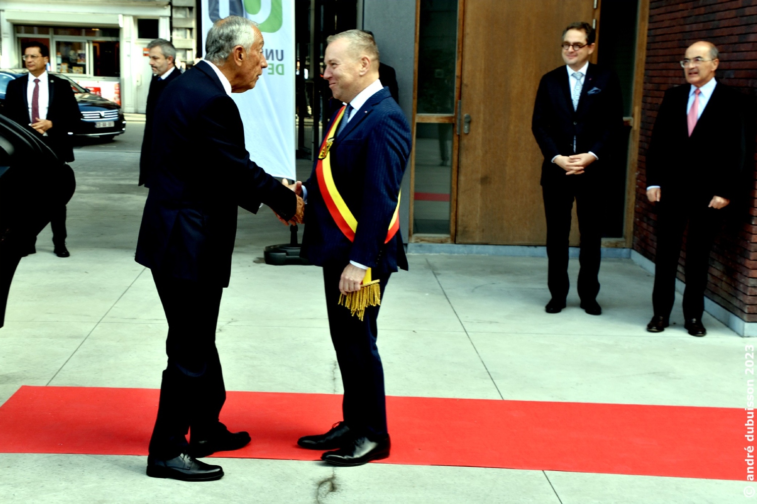 Mi-octobre 2023, le président du Portugal, Marcelo Rebelo de Sousa, s’est rendu en Belgique pour une visite d’État. Le 17 octobre 2023, la délégation s’est rendue directement au Palais de la Nation pour visiter la Chambre et le Sénat, notamment avec Eliane Tillieux. Ensuite, elle a été accueillie par le roi Philippe et la reine Mathilde au Palais royal de Bruxelles. Le 18 octobre 2023, le président du Portugal, Marcelo Rebelo de Sousa, et sa délégation ont été reçus par Denis Mathen, gouverneur de la province de Namur, pour une visite d’état de Namur sous le signe de la numérisation, de l'innovation et de l'énergie.