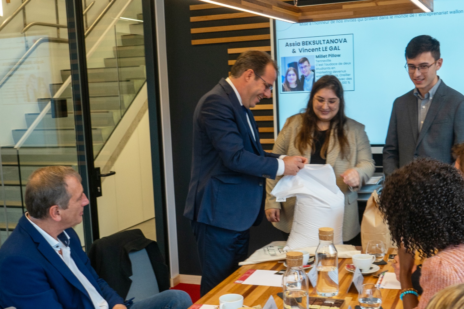 - Assia Beksultanova et Vincent Le Gal Jeunes entrepreneurs audacieux de Tenneville. Millet Pillow, c'est la détermination de deux étudiants en marketing. Ils ont créé un oreiller multi-confort avec des cosses de millet 100 % bio. Assia et Vincent sont en passe de devenir une référence sur le marché des oreillers. Lors de cet atelier, ils ont offert un coussin Millet Pillow à chaque invité. Le Vice-Premier ministre et ministre David Clarinval s’est montré très enthousiaste.